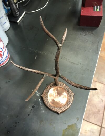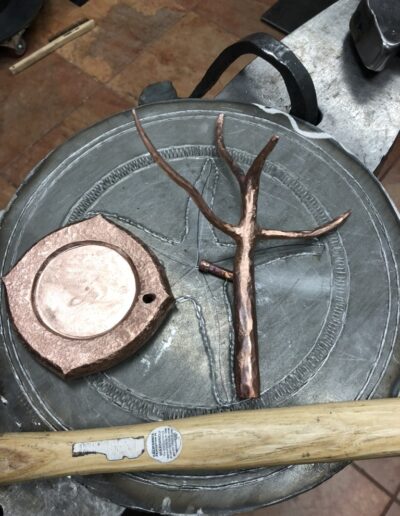 Earrings 1, Copper, Glass, Gold Leaf. 1″x1/2″x2mm